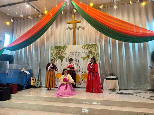 방콕교회에서 추수감사절 예배를 드렸는데 예배중에 여러가지 프로그램이 있었습니다. 특히 한복을 입고 "은혜" 복음성가를 배경으로 청소년들이 율동을 하기도 했습니다.