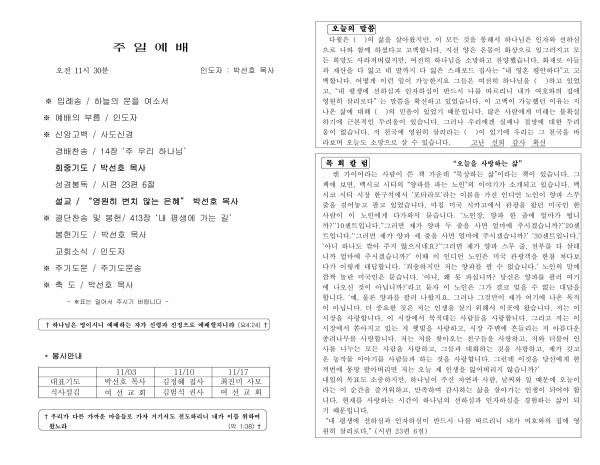 20241103 교회 주보 페이지 정보 작성자 늘푸른교회 댓글 0건 조회 1,264회 작성일 24-11-25 20:57 목록 본문 교회 주보 이전글20241110 교회 주보 24.11.25 다음글20241027 교회 주보 24.11.25 댓글 0 댓글목록 등록된 댓글이 없습니다. 목록