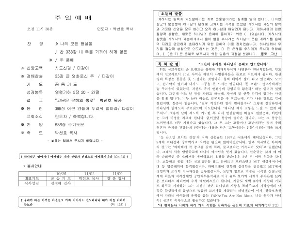 20251026 교회 주보 페이지 정보 작성자 늘푸른교회 댓글 0건 조회 205회 작성일 25-10-25 21:00 목록 본문 교회 주보 이전글20251102 교회 주보 25.11.01 다음글20251019 교회 주보 25.10.18 댓글 0 댓글목록 등록된 댓글이 없습니다. 목록