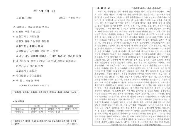 20240526 교회 주보 페이지 정보 작성자 늘푸른교회 댓글 0건 조회 1,613회 작성일 24-06-01 21:26 목록 본문 교회 주보 이전글20240602 교회 주보 24.06.01 다음글20240519 교회 주보 24.05.18 댓글 0 댓글목록 등록된 댓글이 없습니다. 목록