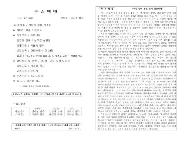 9102023 교회 주보 페이지 정보 작성자 늘푸른교회 댓글 0건 조회 1,615회 작성일 23-09-16 20:09 목록 본문 교회 주보 이전글09172023 교회 주보 23.09.16 다음글09032023 교회 주보 23.09.04 댓글 0 댓글목록 등록된 댓글이 없습니다. 목록