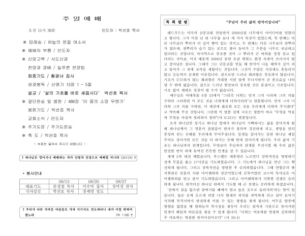 08062023 교회 주보 페이지 정보 작성자 늘푸른교회 댓글 0건 조회 1,632회 작성일 23-08-06 22:26 목록 본문 교회 주보 이전글08132023 교회 주보 23.08.18 다음글07302023 교회 주보 23.07.30 댓글 0 댓글목록 등록된 댓글이 없습니다. 목록