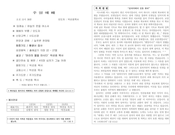 12월 11일 페이지 정보 작성자 늘푸른교회 댓글 0건 조회 1,543회 작성일 22-12-15 07:55 목록 본문 교회 주보 이전글12월 18일 22.12.20 다음글12월 4일 22.12.06 댓글 0 댓글목록 등록된 댓글이 없습니다. 목록