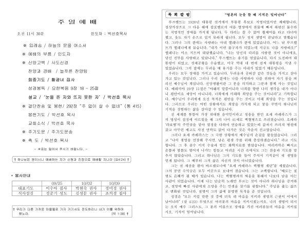 9월 18일 교회주보 페이지 정보 작성자 늘푸른교회 댓글 0건 조회 1,461회 작성일 22-09-19 09:14 목록 본문 9월 18일 교회 주보 이전글9월 25일 22.10.31 다음글9월 11일 교회 주보 22.09.12 댓글 0 댓글목록 등록된 댓글이 없습니다. 목록