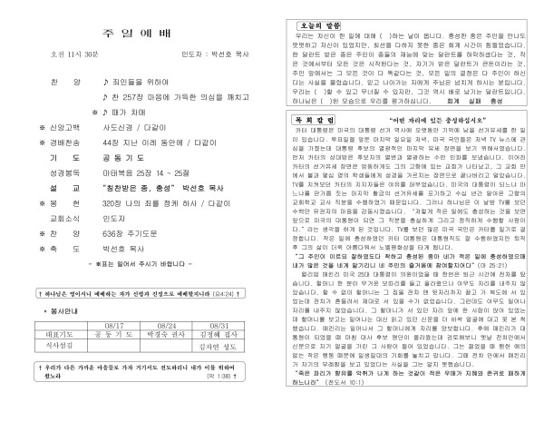 20250817 교회 주보 페이지 정보 작성자 늘푸른교회 댓글 0건 조회 453회 작성일 25-08-16 21:10 목록 본문 교회 주보 이전글20250824 교회 주보 25.08.23 다음글20250810 교회 주보 25.08.10 댓글 0 댓글목록 등록된 댓글이 없습니다. 목록